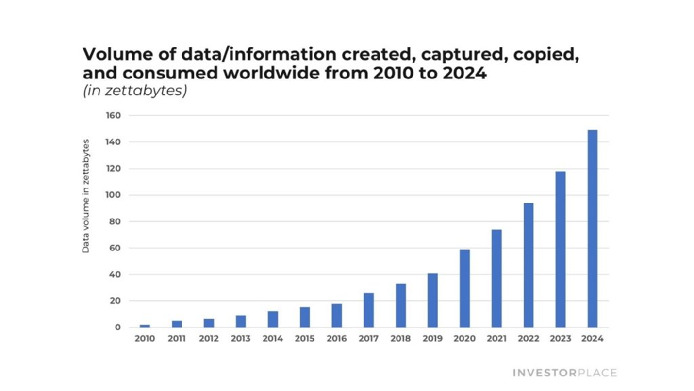 Globally, the world produces about 2.5 exabytes of data per day today. It’s expected that number will rise to 463 exabytes by 2025 (185X higher).