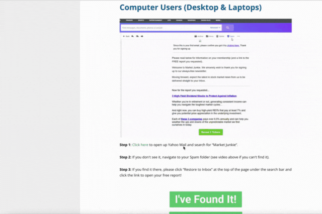 Step 1: Click here to open up Yahoo Mail and search for “Market Junkie”.