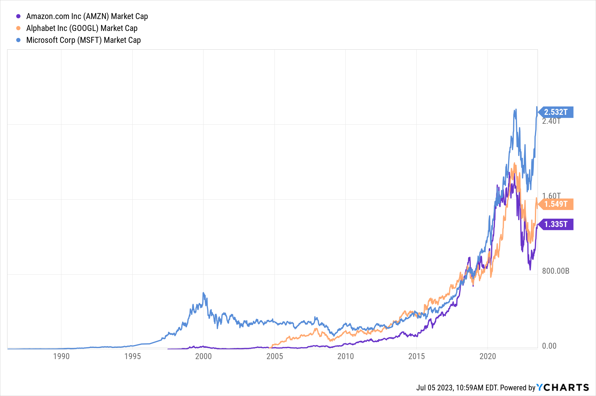 Today, those three internet giants have a combined market value of nearly $5.5 trillion.